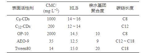 表1 5種表面活性劑的理化性質(zhì)