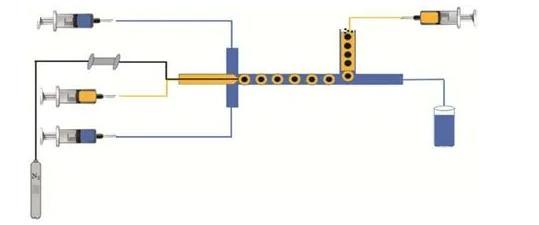 已有的研究結(jié)果表明微尺度氣液液三相流具有獨(dú)特的流動(dòng)、傳遞及反應(yīng)規(guī)律,在化學(xué)反應(yīng)、材料制備、萃取分離等多個(gè)領(lǐng)域均有著重要的應(yīng)用。在化學(xué)反應(yīng)領(lǐng)域,Onal等曾以氫氣作為氣相,不飽和醛類為連續(xù)相,催化劑的水溶液為分散相,在該體系中系統(tǒng)研究了不飽和醛類選擇性加氫的過程并揭示了反應(yīng)動(dòng)力學(xué)。在材料制備領(lǐng)域,Lee等曾以氮?dú)庾鳛閮?nèi)相,含有硅納米顆粒的甲苯溶液作為中間相,連續(xù)相為2%PVA水溶液。在該體系中隨著雙乳液油相中甲苯溶劑的揮發(fā),逐漸形成了硅納米顆粒堆積殼層的中空微球。