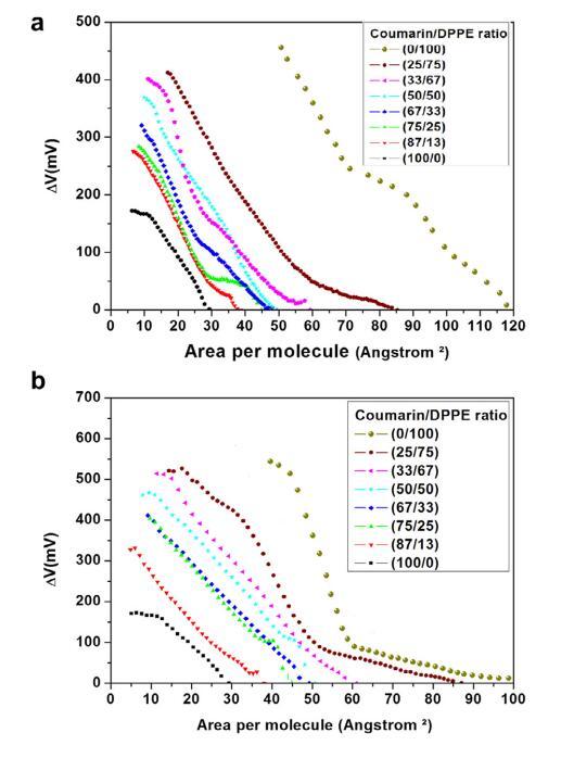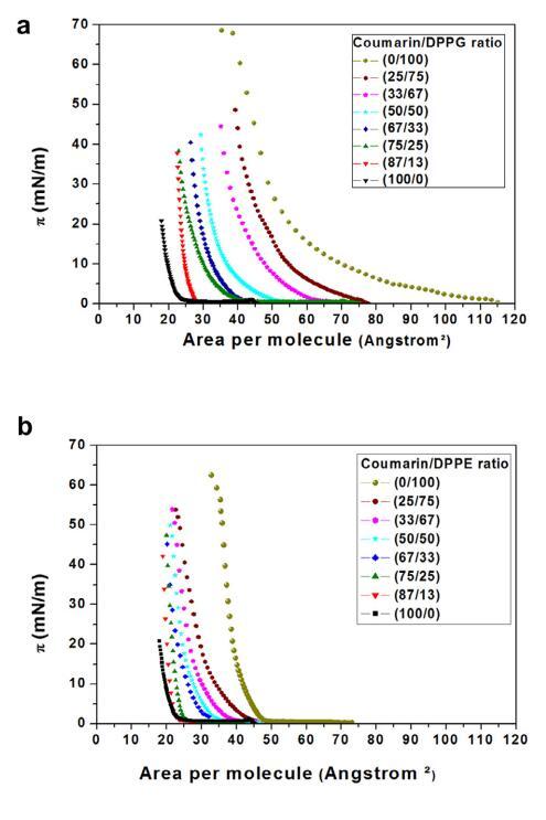 香豆素和磷脂混合物單分子層膜中的分子相互作用的界面性質(zhì)——結(jié)果和討論